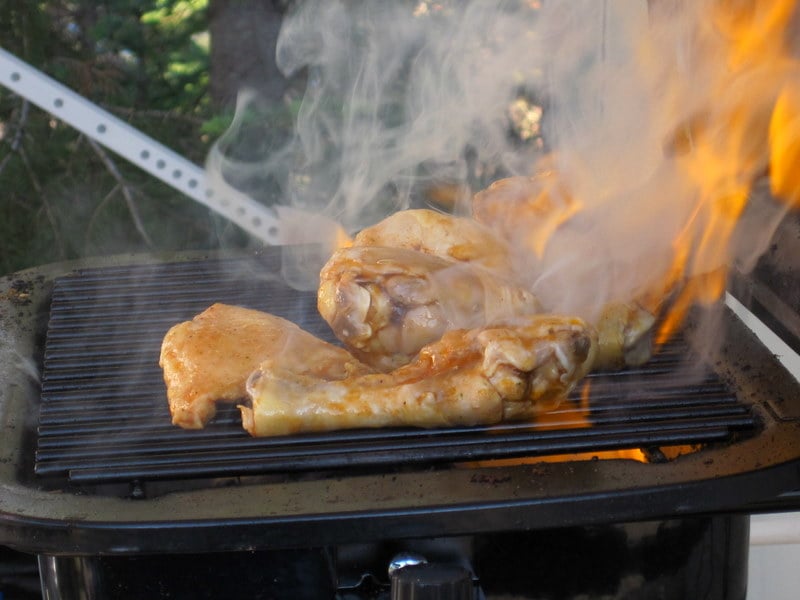Grilled chicken is always an easy campsite meal. Partially cook your chicken pieces at home and you’re enjoying dinner at the campsite in no time. At the campsite throw chicken pieces on the grill and baste with your favorite grilling sauce.